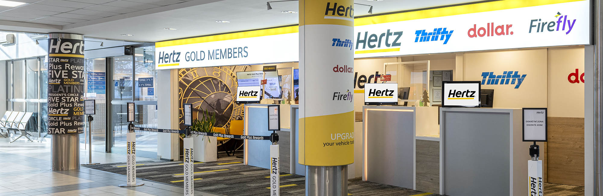 Autopůjčovna HertzPronájmy osobních vozidel a dodávek předních světových značek za rozumnou cenu se zachováním vysokého standardu. Zpět na všechny služby Veřejná část Autopůjčovna Hertz Zavřeno + 420 225 345 021 Napište nám Více Pondělí 08:00 - 22:00 Úterý 08:00 - 22:00 Středa 08:00 - 22:00 Čtvrtek 08:00 - 22:00 Pátek 08:00 - 22:00 Sobota 08:00 - 22:00 Neděle 08:00 - 22:00 Cestujete na služební cestu nebo na dovolenou? Potřebujete spolehlivé a kvalitní vozidlo? Hertz nabízí pronájmy osobních vozidel a dodávek předních světových značek za rozumnou cenu se zachováním vysokého standardu. Pro členy Hertz Gold Plus Rewards nebo Frequent Flyer programů máme navíc zvýhodněné ceny s dalšími benefity. Mohlo by Vás zajímat Visitor Centre Visitor Centre v příletové hale Terminálu 1 a Term ...Veřejná část Zavřeno Více informací Blue Style Cestovní kancelář specializující se na letecké dov ...Veřejná část Zavřeno Více informací Reklamace zavazadel Řešíte ztrátu či poškození vašich zavazadel během ...Více umístění Otevřeno Více informací Relay Prodejna s širokou nabídkou tisku, tabáku, drobnéh ...Více umístění Různá otevírací doba Více informací
