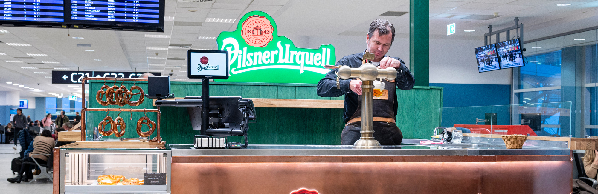 Beer & PretzelMobilní kiosek pro všechny milovníky světoznámé značky Pilsner Urquell a výtečných preclíků. Zpět na všechny služby Terminál 2, Prst C Za kontrolou Beer & Pretzel Zavřeno Napište nám Více Pondělí 11:00 - 19:00 Úterý 11:00 - 19:00 Středa 11:00 - 19:00 Čtvrtek 11:00 - 19:00 Pátek 11:00 - 19:00 Sobota 11:00 - 19:00 Neděle 11:00 - 19:00 Mobilní kiosek pro všechny milovníky světoznámé značky Pilsner Urquell, kteří si před odletem mohou vychutnat vynikající a dokonale načepované pivo s tradičním slaným preclíkem. Mohlo by Vás zajímat Marché Pasta & Salad Vychutnejte si širokou škálu čerstvě připravených ...Za kontrolou Zavřeno Více informací So! Coffee Útulná kavárna navržená pro pohodlí cestujících, k ...Za kontrolou Zavřeno Více informací Zigolini Caffè & Bar Klasické italské chuťovky jako výtečná plněná foca ...Za kontrolou Otevřeno Více informací PAUL Tradiční francouzské pekařství, vynikající bagety, ...Za kontrolou Různá otevírací doba Více informací