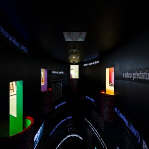 Through Forum Havlum, Bořek Šípek provides insight into the life and work of the first president of Czechoslovakia and then the Czech Republic. The installation presents him primarily as a playwright but does not exclude his personal life and political activity either. It is left up to everyone to form their own opinion on the life and work of Václav Havel based on the installation.