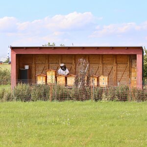 Prague Airport has been keeping bees since November 2011 when Prague joined other major airports which use bees to monitor air quality around the airport in order to reduce the negative impacts of air traffic on the environment. Today, there are eight beehives in the Southern part of the airport. The main goal of beekeeping is to monitor the air for the levels of contaminants through bee products.