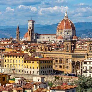 Carriers Find a ticketVoloteaPlan Your Airport Journey in Advance.Plan JourneyFlorence, one of the most romantic cities in Europe, will enchant you with its history, art, and excellent gastronomy. Start your tour of the city at the main square, Piazza del Duomo, where several famous monuments are located. Visit the Renaissance Cathedral of Santa Maria del Fiore with Brunelleschi’s dome, the baptistery of St. John the Baptist, and the Campanile bell tower, from which you can enjoy a beautiful view. Another important square worth seeing is the Piazza della Signoria with the Palazzo Vecchio town hall. Also stop at the Ponte Vecchio, the oldest and most famous bridge in Florence over the Arno River.If you love art, you’ll love the Uffizi Gallery, where you can admire one of the largest collections of Renaissance art in the world. Don’t forget to try local delicacies and ice cream. You can buy artisan cheeses, cured meats, and sweets from local producers at the Mercado Centrale.