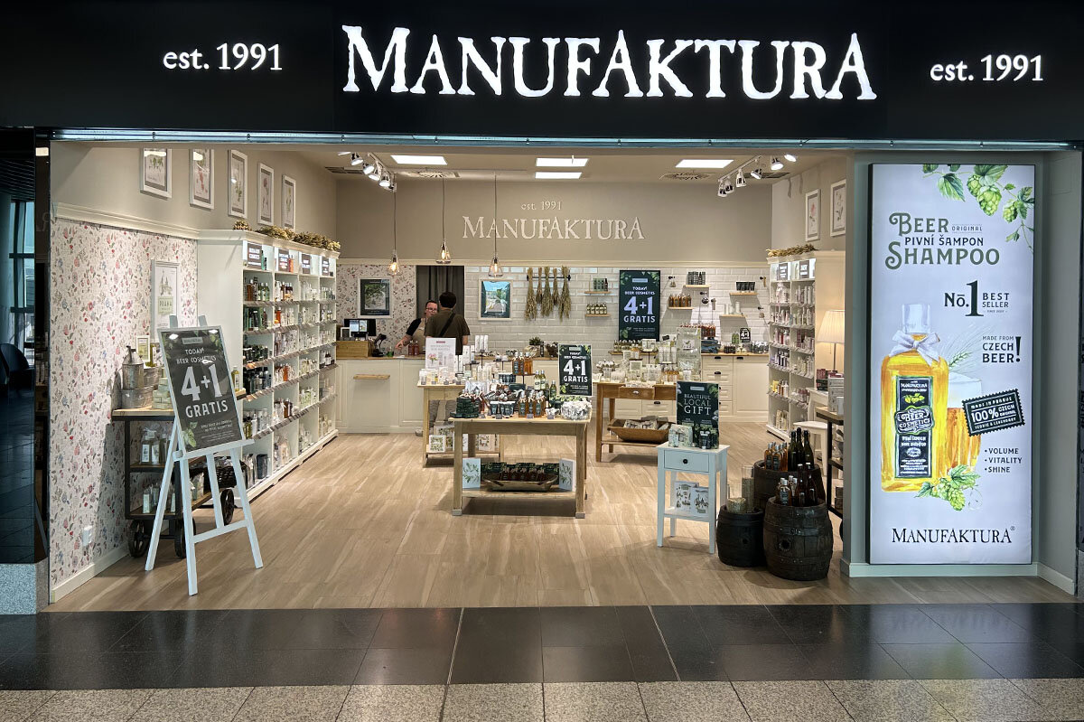 ManufakturaCzech products that respect nature and sustainability, are not tested on animals, and most are vegan-friendly. Back to All services Terminal 1 Past the checkpoint Manufaktura Closed +420 601 310 612 Contact us Learn More Monday 7:00 AM - 9:00 PM Tuesday 7:00 AM - 9:00 PM Wednesday 7:00 AM - 9:00 PM Thursday 7:00 AM - 9:00 PM Friday 7:00 AM - 9:00 PM Saturday 7:00 AM - 9:00 PM Sunday 7:00 AM - 9:00 PM Terminal 2, Pier D Past the checkpoint Manufaktura Closed +420 601 310 612 Contact us Learn More Monday 7:00 AM - 9:00 PM Tuesday 7:00 AM - 9:00 PM Wednesday 7:00 AM - 9:00 PM Thursday 7:00 AM - 9:00 PM Friday 7:00 AM - 9:00 PM Saturday 7:00 AM - 9:00 PM Sunday 7:00 AM - 9:00 PM Manufaktura is a 100% Czech brand of cosmetics full of nature, traditions and stories established in 1991. It pays particular attention to local ingredients, efficient & gentle formulae, wonderful fragrances, respect for nature and sustainability. Manufaktura is 1st holder of the Leaping Bunny cruelty-free certificate of not testing on animals in the Czech Republic and most of its cosmetic products are suitable for vegans.Thanks to attractive design with botanical motifs by Czech artists and thanks to a wide range of gift wrapping, Manufaktura is a great tip on an original gift for women and men. Besides cosmetics our Manufaktura shops offer a choice of authentic teas, syrups and accessories for home spa. You could be interested in Billa A wide range of fresh food, cosmetics, and pet sup ...Public Area Closed More information SPARKYS A toy shop that brings joy to children and can put ...Past the checkpoint Opening hours vary More information Made by Praha Gifts and souvenirs of refined taste that respect ...Past the checkpoint Closed More information Prague Chocolate Steiner & Kovarik A family-run company with a desire to surprise wit ...Past the checkpoint Closed More information
