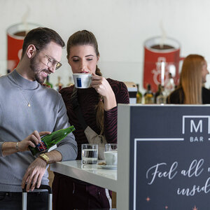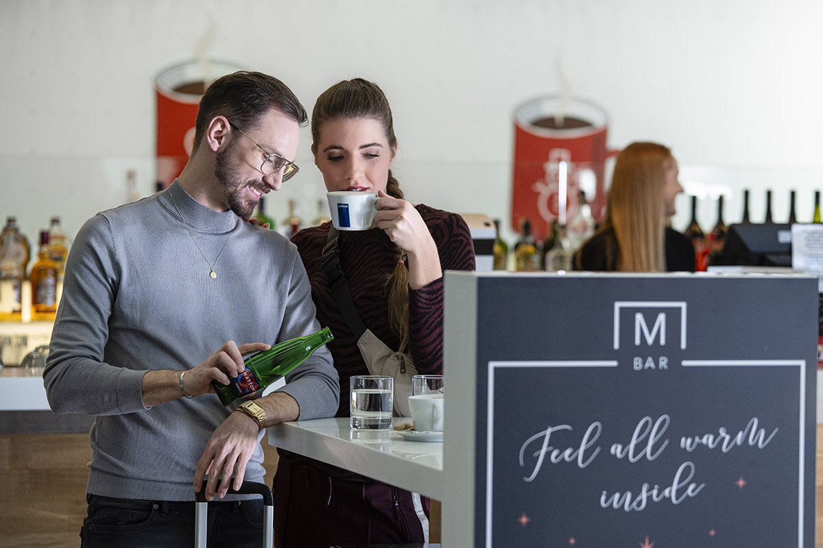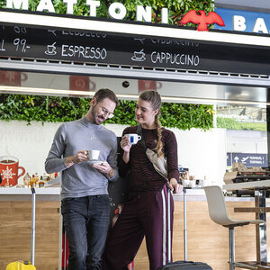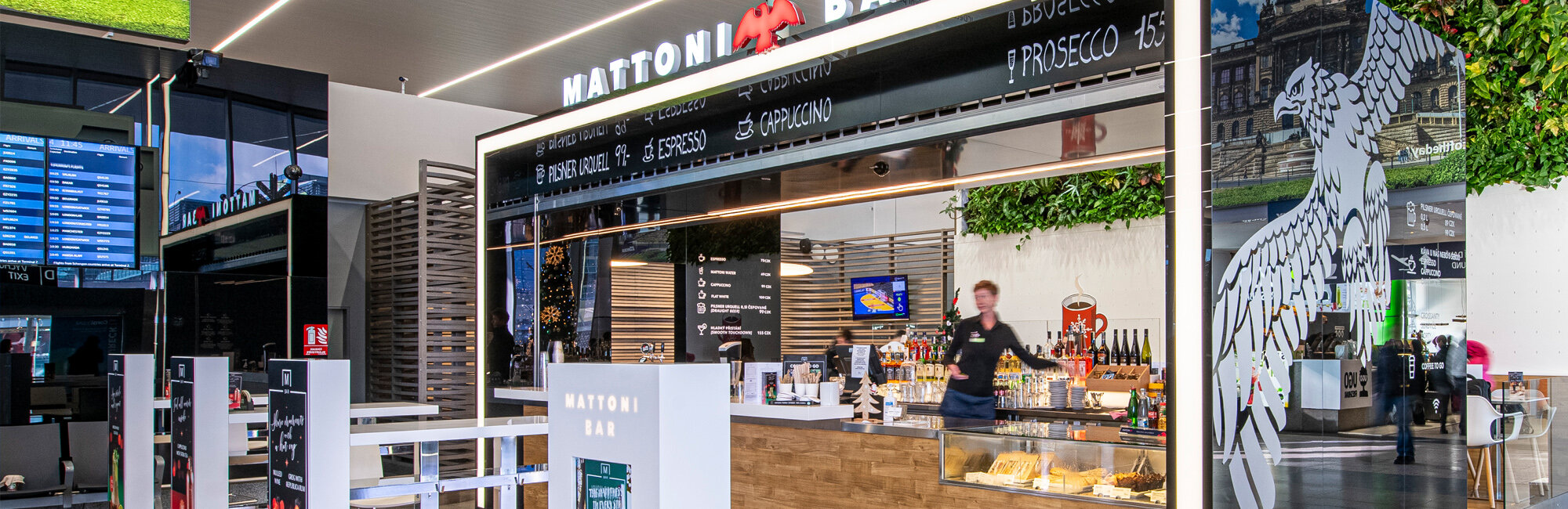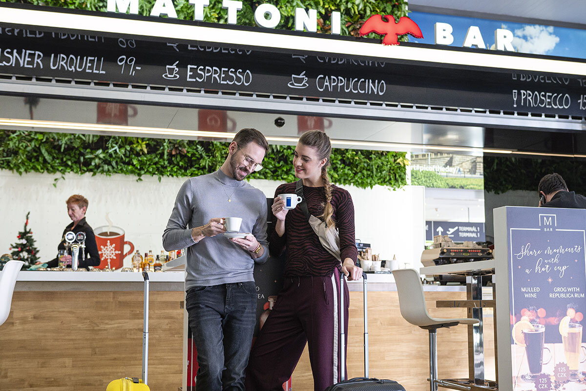 Mattoni BarThe perfect place to meet over a cup of L' OR Espresso Sublime coffee. We offer great drinks and delicious snacks. Back to All services Terminal 1 Public Area Mattoni Bar Now open Contact us Learn More Monday 7:00 AM - 9:00 PM Tuesday 7:00 AM - 9:00 PM Wednesday 7:00 AM - 9:00 PM Thursday 7:00 AM - 9:00 PM Friday 7:00 AM - 9:00 PM Saturday 7:00 AM - 9:00 PM Sunday 7:00 AM - 9:00 PM Mattoni Bar is an ideal meeting place and a pleasant way to spend your waiting time at the airport. For the first drink after your flight we recommend an original signature drink “Smooth Touchdown” or a quality coffee L' OR Espresso Sublime, 100% Arabica. There are also tasty snacks, sweets and a wide selection of soft drinks. You could be interested in Pilsner Urquell Original Restaurant Restaurant with a unique setting and inspiring ori ...More locations Now open More information Marché Pasta & Salad Enjoy a wide range of freshly made salads and home ...Past the checkpoint Now open More information AeroPorto Czech beer, top cocktails and a wide range of dish ...Past the checkpoint Now open More information Marché Dishes prepared from local ingredients right in fr ...Past the checkpoint Now open More information