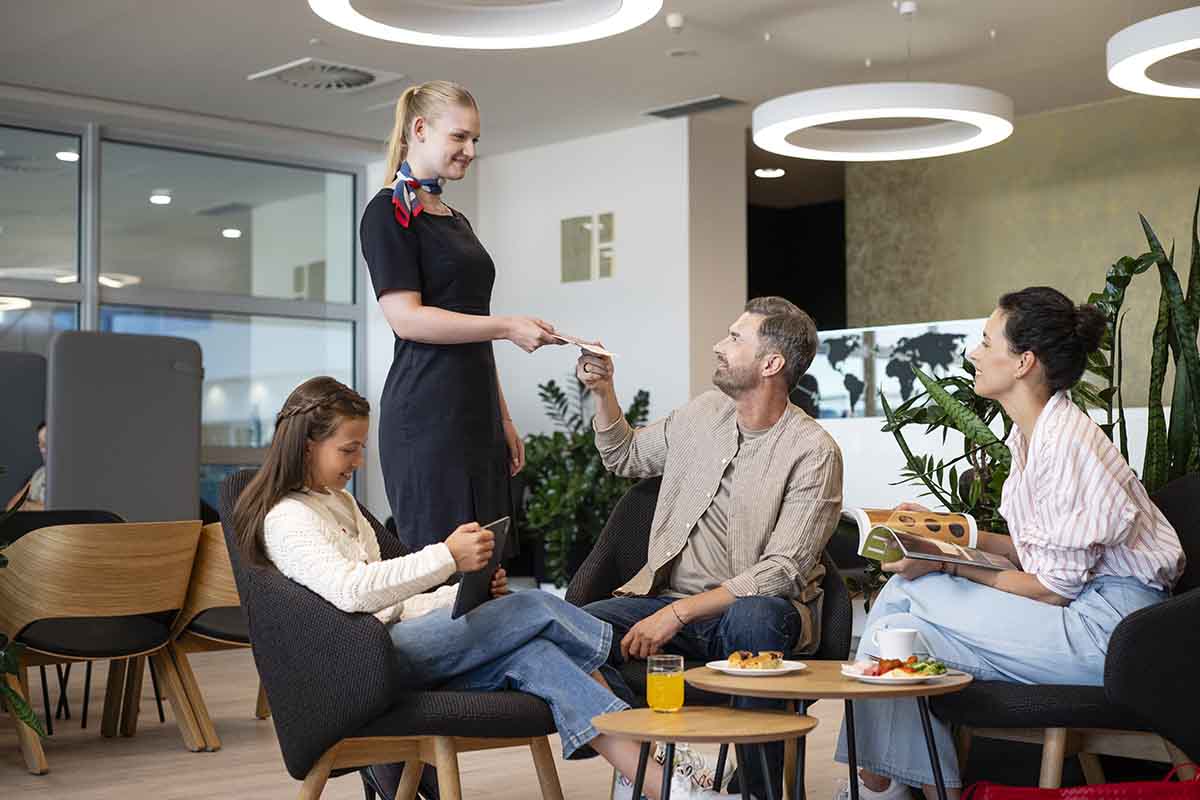 Comfortable environment for working or relaxing before the departure of your flight is to be enjoyed if you select one of the three lounges, which feature children’s corners and provide premium services.