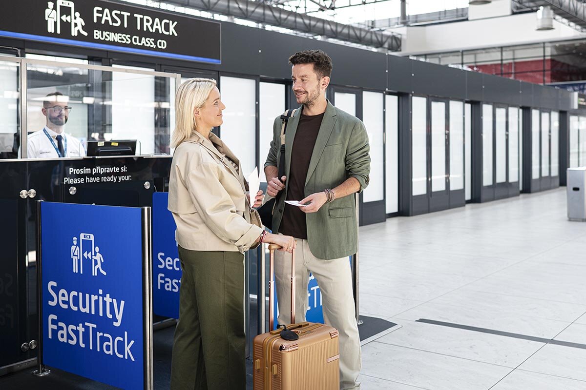 Security FastTrackMore time for what you love – with priority access to security screening at Terminal 2. Back to All servicesPriority Access to Security ScreeningAre you travelling within the Schengen Area from Terminal 2?With Security FastTrack, you’ll enjoy priority access to security screening, regardless of your ticket type. You’ll avoid the lines, get to the screening area faster, and gain something truly valuable — more time for what you love. Whether that’s coffee, shopping, or simply a calm start to your journey.CT scanners enhance comfort at security by allowing you to keep electronics and liquids in your carry-on baggage. This makes your journey through Security FastTrack even more pleasant.Order Security FastTrackWhere to find usAfter arriving at Terminal 2, follow the signs leading to the centralized security checkpoint in the Departure Hall, where you will find a special entrance for the users of the Security FastTrack service.PriceFrom CZK 199 / personEach person must have their own entry (adult and child). The price for payment at the self-service kiosk is CZK 200 / person. Price for online payment is CZK 199 / person.The Security FastTrack service is only available for travel to Schengen countries (Terminal 2) and may be used 60 minutes before and 60 minutes after the time specified upon the service booking (when booked online) or within a 90-minute period when purchased at the self-service kiosk. The service cannot be used for passage with strollers and luggage other than standard cabin (hand luggage). The service can be booked online at least 2 hours before the scheduled passage or directly at the kiosk with immediate validity. Close Instructions for using the service (online booking) Before the security check, find the special entrance that is dedicated to Security FastTrack Have your boarding pass and the purchased voucher ready for review Present your boarding pass and the ticket with the QR code to the security screening officer at the validator to be granted security screening priority passageOrder Security FastTrackInstructions for using the service (purchase at the self-service kiosk in the departure hall) The service can be purchased at the self-service kiosk marked Security FastTrack (before entering the security checkpoint) in Terminal 2. The pass can be used within 90 minutes of purchase. General Terms and Conditions could be viewed here After purchasing the service, remove the ticket with the QR code and proceed to the Security FastTrack entrance (to the left of the kiosk) Please present your boarding pass and purchased ticket to the staff at the entrance, who will grant you priority access to the security screening. Location Terminal 2 Public Area Security FastTrack Now open +420 220 111 888 Contact us Monday 4:00 AM - 9:00 PM Tuesday 4:00 AM - 9:00 PM Wednesday 4:00 AM - 9:00 PM Thursday 4:00 AM - 9:00 PM Friday 4:00 AM - 9:00 PM Saturday 4:00 AM - 9:00 PM Sunday 4:00 AM - 9:00 PM You could be interested in Value Added Tax Refund – VAT Get your VAT refund on purchases. Enjoy quick and ...Public Area Now open More information Erste Premier Lounge The lounge offers comfort and convenience while yo ...Past the checkpoint Now open More information Private Check-in Service Take advantage of the individual private check-in ...Public Area Now open More information VIP Service Club CONTINENTAL Travel without stress and waiting. Take advantage ...Public Area Now open More information