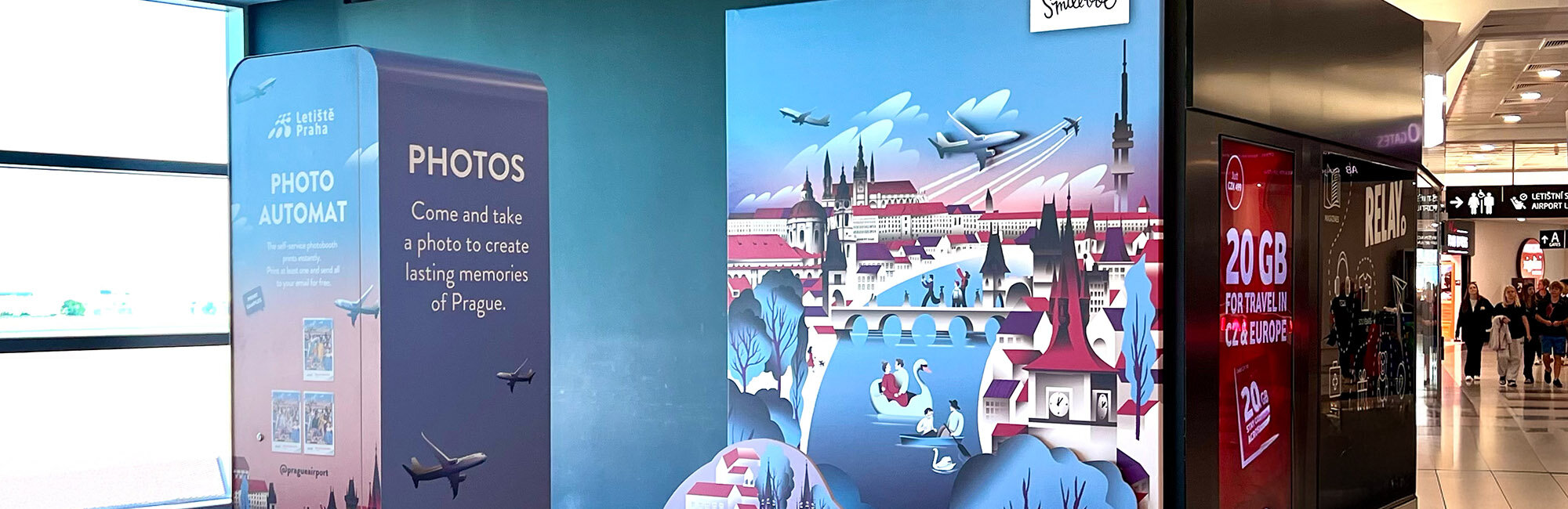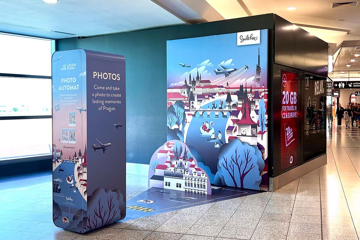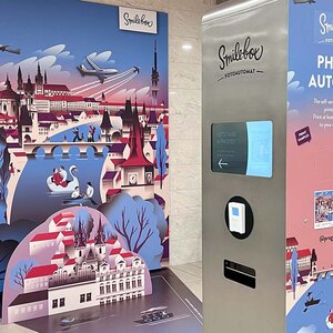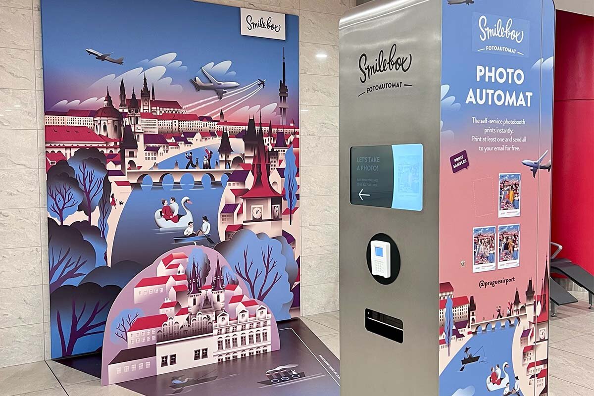Smilebox Photo BoothCreate printed photos with original backgrounds to preserve your memories forever Back to All services Terminal 1 Past the checkpoint Smilebox Photo Booth Now open Contact Us Learn More Monday Nonstop Tuesday Nonstop Wednesday Nonstop Thursday Nonstop Friday Nonstop Saturday Nonstop Sunday Nonstop Terminal 2, Pier D Past the checkpoint Smilebox Photo Booth Now open Contact Us Learn More Monday Nonstop Tuesday Nonstop Wednesday Nonstop Thursday Nonstop Friday Nonstop Saturday Nonstop Sunday Nonstop The Smilebox Photo Booth has landed at Vaclav Havel Airport Prague! Capture your smiles before or after your flight and take home an original photo as a souvenir. You can print your photo in a matter of seconds and send it by email – all for just CZK 79 (≈ 3,30 €)! Try it out and only pay if you like the photos. The background is the work of the creative studio Tomski & Polanski. We look forward to seeing you at both terminals... You could be interested in Large-scale games Large-format games will make the time at the airpo ...More locations Now open More information Poesiomat The Poesiomat offers 20 audio stories about renown ...Past the checkpoint Now open More information Room for passengers with children Equipped room with changing tables, a play area or ...Past the checkpoint Now open More information Children's corners Large climbing frames, slides and toys for the lit ...Past the checkpoint Now open More information