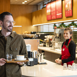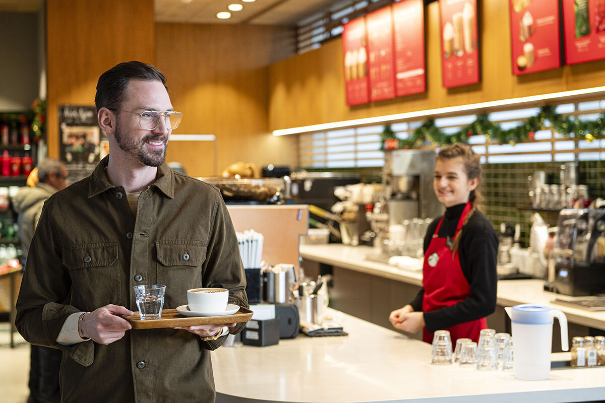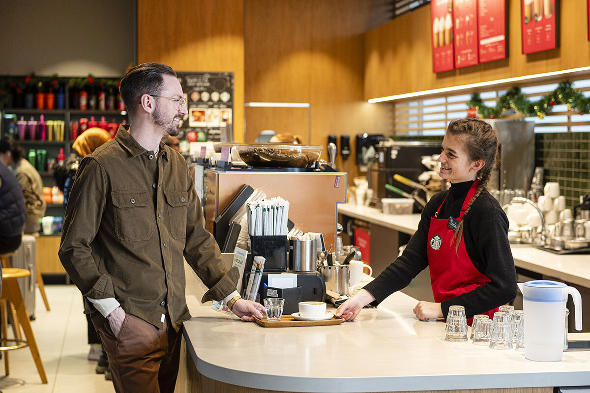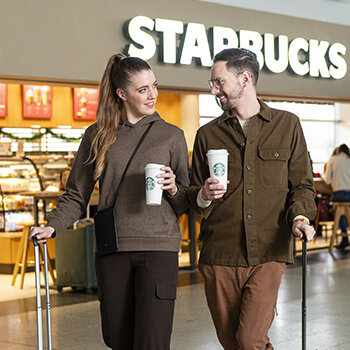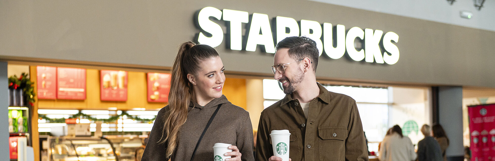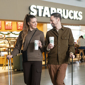 StarbucksA café for all coffee lovers who come back for friendly service, friendly atmosphere and above all a perfect cup of professionally prepared coffee. Come to Starbucks to relax, meet friends, work or study. Back to All services Terminal 1 Public Area Starbucks Opening at 6:30 AM Contact us Learn More Monday 6:30 AM - 10:30 PM Tuesday 6:30 AM - 10:30 PM Wednesday 6:30 AM - 10:30 PM Thursday 6:30 AM - 10:30 PM Friday 6:30 AM - 10:30 PM Saturday 6:30 AM - 10:30 PM Sunday 6:30 AM - 10:30 PM To say Starbucks purchases and roasts high-quality whole bean coffees is very true. Our stores are a beacon for coffee lovers everywhere who come for genuine service, an inviting atmosphere and a superb cup of expertly roasted and brewed coffee. We’re not just passionate about coffee, but everything else that goes with a full and rewarding coffee experience. Starbucks offer premium Teavana teas, fine pastries and other delectable treats. It’s not unusual to see people coming to Starbucks to chat, meet up, work. Get to know our loyalty program Starbucks Rewards – download the app StarbucksCEE and see ale the benefits. Come to Starbucks and you’ll see: we are so much more than what we brew. You could be interested in Beer & Pretzel A mobile kiosk for all fans of the world-renowned ...Past the checkpoint Closed More information KFC Enjoy crispy chicken specialties made according to ...Public Area Closed More information Mattoni Bar The perfect place to meet over a cup of L' OR Espr ...Public Area Closed More information prg take off bar The unique designer bar offers the best local and ...Past the checkpoint Closed More information