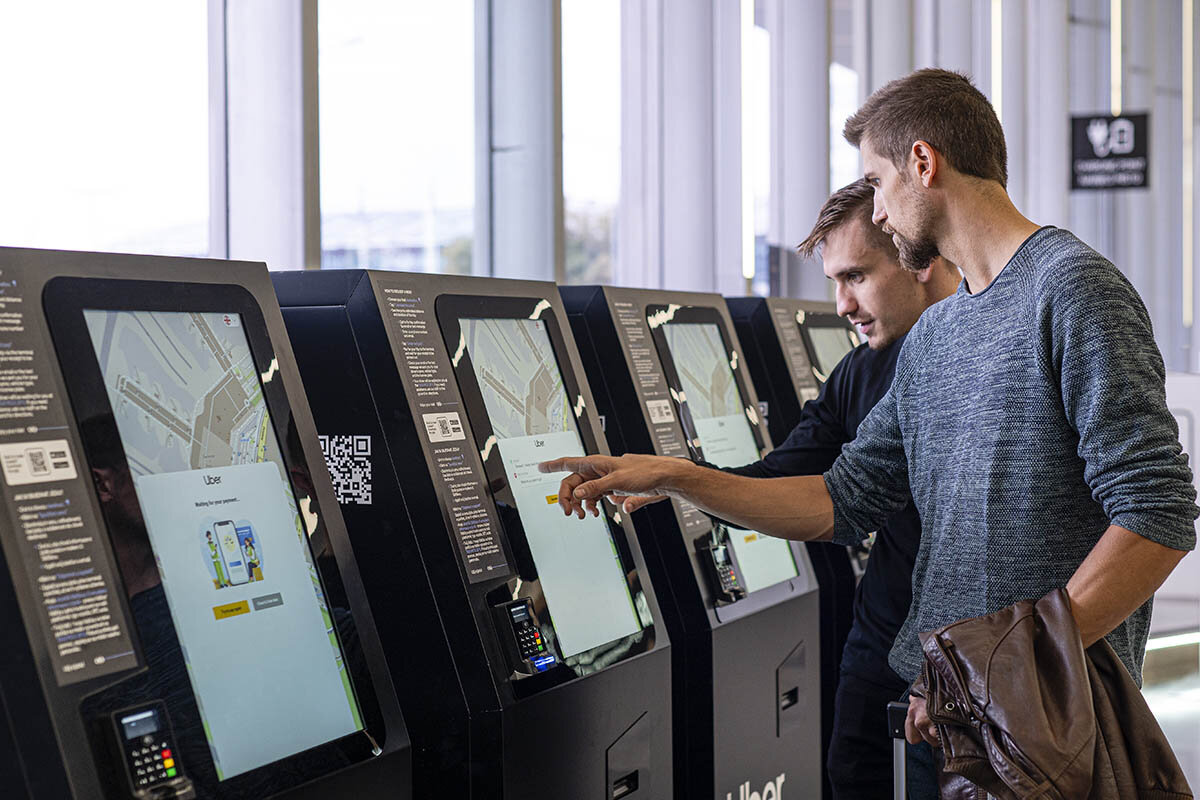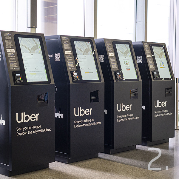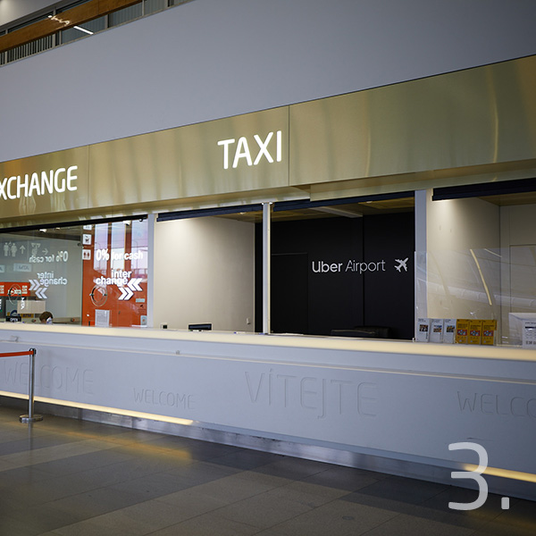 Taxi (Uber Airport)Official Taxi Service at Vaclav Havel Airport Prague Back to All services Terminal 1 Public Area Taxi (Uber Airport) Now open +420 257 257 257 Uber Support Monday Nonstop Tuesday Nonstop Wednesday Nonstop Thursday Nonstop Friday Nonstop Saturday Nonstop Sunday Nonstop Terminal 2 Public Area Taxi (Uber Airport) Now open +420 257 257 257 Uber Support Monday Nonstop Tuesday Nonstop Wednesday Nonstop Thursday Nonstop Friday Nonstop Saturday Nonstop Sunday Nonstop The hotline number is not intended for booking taxi services.Use the Uber Airport service for transportation to or from the airport. Travel in premium vehicles with experienced drivers. To book your ride, you can use the Uber app, self-service kiosks, or the counters in the arrivals hall.Book a ride by Uber app Contact Information SharingRozbalitNo registration in the sense of entering personal data is required to order the service. Only your email address is required. Self-service kiosks or counters only require emails to comply with legislation, not as a basis for registration or other marketing activities.For easier communication, please enter your phone number as well to receive all the necessary information related to your ride. The phone number is only requested from passengers to ensure the smoothest check-in possible, as previous experience shows that email communication often fails, either due to a wrong email address or due to the lack of local passenger data.What are the advantages? If you provide your email address, your tax receipt will be sent to you electronically along with a summary of your trip. This way you can have all the information at hand. Electronic versions also help us to protect the environment. Passengers value mobile phone communication for its seamless functionality and smooth operation. 1. Uber applicationThe fastest way of booking is via the Uber application, which shows you where you are going and how much you will pay for the ride. You will have everything handy on your phone. Payments are accepted in cash or by a card which you connect with the application. Select the Uber Airport product from the menu and you’re good to go. 2. Self-Service KiosksYou can also use self-service kiosks, with a similar user interface as in the application. With this option, payments are only possible by card through the terminal. After payment is completed, you will get a receipt with all the necessary information for your ride. Printed instructions for booking a ride can also be found on the kiosk right next to the monitor. 3. Service Counter with AssistantsIf you need help with your order, we have a counter with staff at each terminal. At the counter, they will tell you all the necessary information and help you order a taxi. There you can pay by card or cash.Opening hours of the counter are daily 7:00 a.m. - 12:00 a.m.After ordering a taxi ride, you will receive a six-digit PIN code to share with the driver after boarding the vehicle. Please note that the service cannot be used other than with a pre-ordered ride and the generated PIN code.Areas designed for passenger boarding (Pick-up Points) are located directly in front of the arrival halls of Terminals 1 and 2. In case of any uncertainties, look for an Uber coordinator or visit the Uber counter in one of the arrival halls.The Pick-up Point is identical for all three methods of ordering the service.Cars are available non-stop directly in front of the arrival halls of both terminals. For better on-site orientation and your comfort, dispatchers are ready to help by the arrival hall exits or at the car meeting points (7:00 a.m. - 9:00 p.m.).Have a nice ride.Take a ride with Uber Airport You could be interested in Relay Shop with variety of pruducts from readables, toba ...More locations Opening hours vary More information Baggage Claims Are you trying to resolve the loss of or damage to ...More locations Now open More information First Aid First Aid workers of the Association of the Samari ...Public Area Now open More information ATM ATM machines are available in all terminals and in ...Public Area Now open More information
