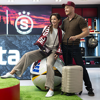 Fanshop AC Sparta PrahaOficiální fanshop pražského fotbalového klubu Zpět na všechny služby Terminál 2, Prst D Za kontrolou Fanshop AC Sparta Praha Zavřeno +420 724 775 786 Napište nám Více Pondělí 07:00 - 21:00 Úterý 07:00 - 21:00 Středa 07:00 - 21:00 Čtvrtek 07:00 - 21:00 Pátek 07:00 - 21:00 Sobota 07:00 - 21:00 Neděle 07:00 - 21:00 Objevte kouzlo fotbalové vášně přímo na Letišti Václava Havla Praha v našem fanshopu AC Sparta Praha. Přineste si kousek ikonického klubu domů – od dresů a šál až po unikátní suvenýry. Ať už cestujete kamkoli, fanshop AC Sparta Praha je místem, kde si můžete připomenout oblíbené momenty z historie klubu nebo se zabavit v interaktivní zóně. Mohlo by Vás zajímat Pražská čokoláda Steiner & Kovarik Rodinná firma se snahou překvapovat novými, mnohdy ...Za kontrolou Zavřeno Více informací Lékárna BENU Přijďte si k nám pro léky i pro radu. Rádi vám por ...Veřejná část Zavřeno Více informací Sunglass Hut Řetězec obchodů s širokou nabídkou módních značkov ...Za kontrolou Zavřeno Více informací Veselá veverka Vyberte si ze širokého sortimentu výběrových oříšk ...Za kontrolou Zavřeno Více informací