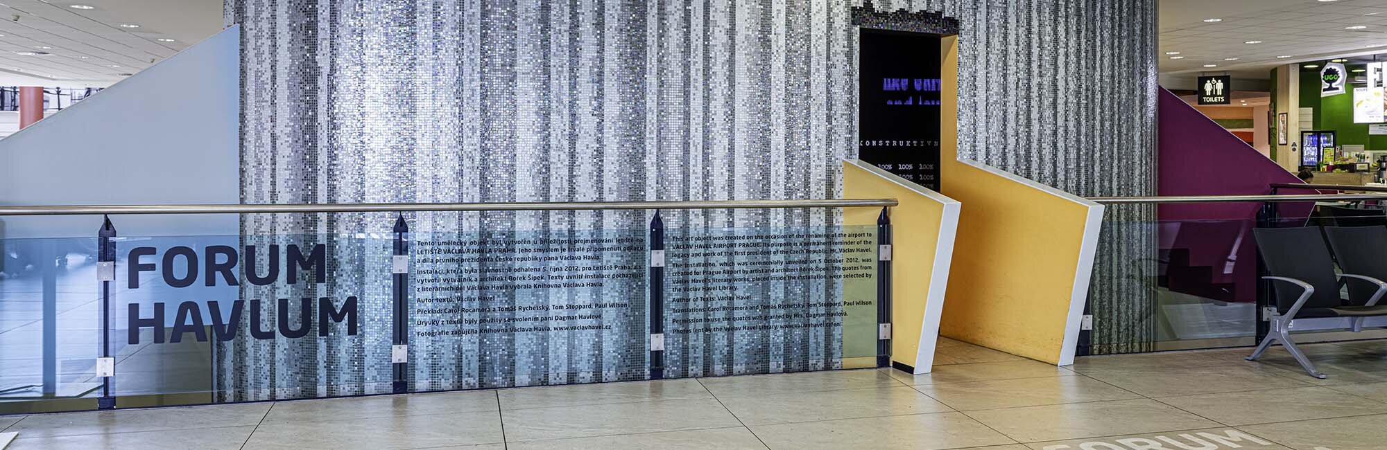 Forum HavlumNěkolika úrovňová instalace, kde si divák prohlédne literární i dramatické citáty a politické výroky Václava Havla. Zpět na všechny služby Terminál 2 Veřejná část Forum Havlum Otevřeno Více o autorovi Pondělí Nonstop Úterý Nonstop Středa Nonstop Čtvrtek Nonstop Pátek Nonstop Sobota Nonstop Neděle Nonstop Divadelní scéna s lóžemi a balkonyUnikátní umělecká instalace Forum Havlum, kterou vytvořil architekt a výtvarník Bořek Šípek jako poctu svému blízkému příteli, prezidentovi Václavu Havlovi. Tento prostor, připomínající divadelní scénu s lóžemi a balkony, je umístěn v odletové hale Terminálu 2 a slouží jako místo pro zamyšlení nad Havlovým odkazem. Návštěvníci zde mohou sledovat promítané citáty z jeho děl v češtině a angličtině, stejně jako záběry z jeho života.Forum Havlum bylo slavnostně odhaleno 5. října 2012 u příležitosti přejmenování letiště na počest Václava Havla. Mohlo by Vás zajímat Foto kabina V odletové hale Terminálu 2 naleznete foto kabinu. ...Veřejná část Otevřeno Více informací Poesiomat Poesiomat nabízí 20 audio příběhů o známých českýc ...Za kontrolou Otevřeno Více informací Smilebox Fotoautomat Vytvořte si památku na věky v podobě tištěných fot ...Za kontrolou Otevřeno Více informací Dětské koutky Velké prolézačky, klouzačky a hračky pro malé pasa ...Za kontrolou Otevřeno Více informací