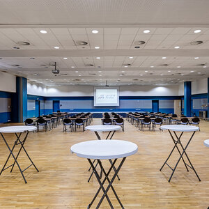 Sál je možné prostřednictvím posuvných stěn rozdělit na tři třetiny.
