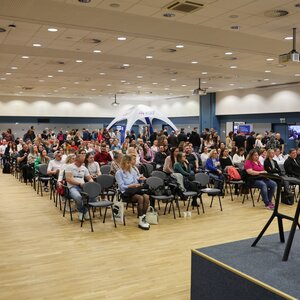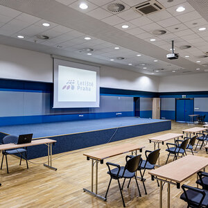 - Maximální kapacita sálu v uspořádání „divadlo“ je 220 míst k sezení, v uspořádání „třída“ 100 míst.