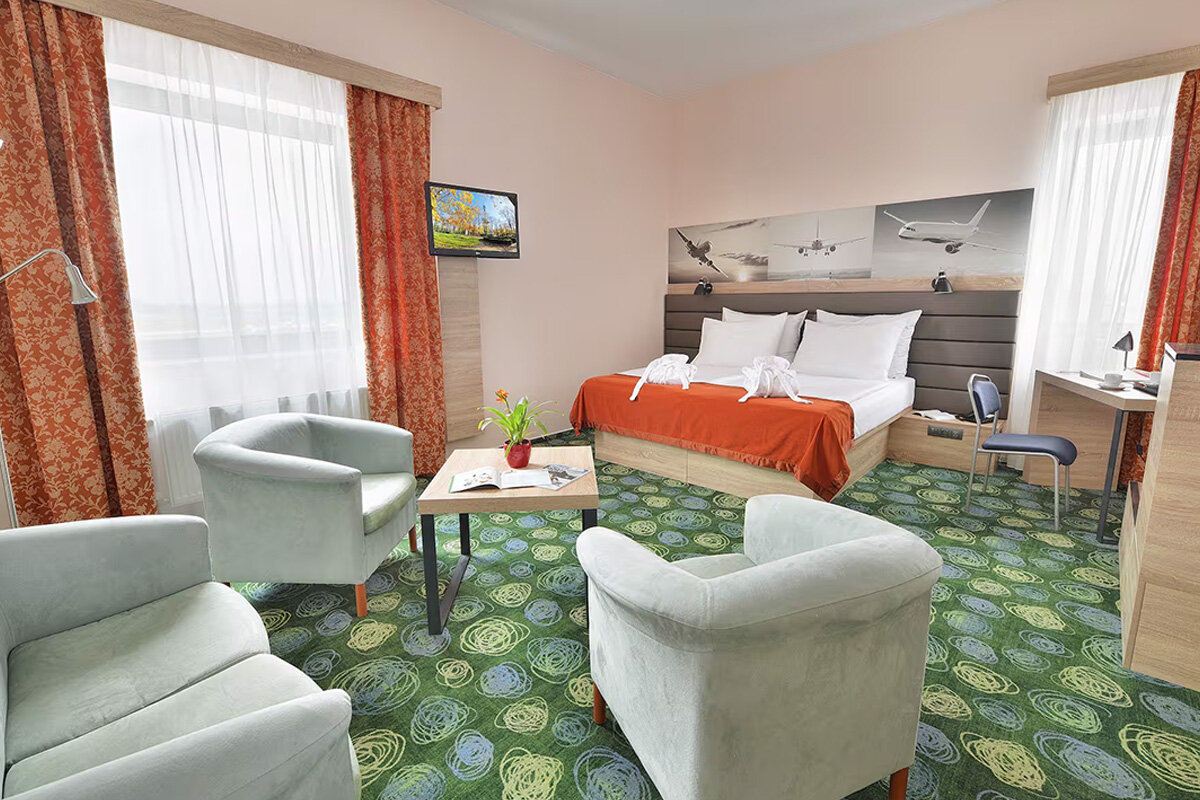 Ramada Airport Hotel PragueHotel, který nabízí promyšlené vybavení a pohodlí pro váš odpočinek a k načerpání sil před další cestou Zpět na všechny službyRamada Airport Hotel Prague nabízí pohodlné ubytování přímo v areálu Letiště Václava Havla Praha. Hotel poskytuje klidné a moderní pokoje, restauraci s celodenním provozem, konferenční prostory a kyvadlovou dopravu k terminálům. Ideální volba pro cestující, kteří ocení pohodlí a rychlý přístup k letištním službám.Ramada Airport Hotel Prague vám nabízímoderní a klidné pokoje vhodné pro relaxaci i prácicelodenní stravování v restauracirychlý a pohodlný transfer k terminálůmmožnost pobytu s domácími mazlíčkykonferenční a business prostoryRezervovat ubytování Místo Veřejná část Ramada Airport Hotel Prague Otevřeno (800) 854-9517 Více Pondělí Nonstop Úterý Nonstop Středa Nonstop Čtvrtek Nonstop Pátek Nonstop Sobota Nonstop Neděle Nonstop Mohlo by Vás zajímat AeroRooms Brzký ranní let nebo dlouhý přestup? Žádný problém ...Více umístění Otevřeno Více informací VIP Service Club CONTINENTAL Cestování bez stresu a čekání. Využijte výhody a p ...Veřejná část Otevřeno Více informací Meet and Assist Osobní doprovod letištěm spolu s komfortem salonku ...Veřejná část Otevřeno Více informací Mastercard Lounge Salonek nabízí pohodlí, skvělý výhled na runway a ...Za kontrolou Otevřeno Více informací