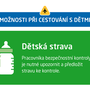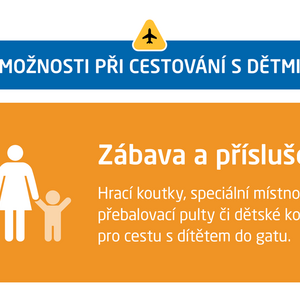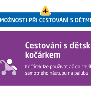 23. 6. 2022Samostatnou kapitolu cestování letecky věnujeme dětem. Právě cesta letadlem může být pro rodiče i jejich ratolesti stresující. To platí dvojnásob v období letních dovolených. Letiště Praha dalším dílem edukační kampaně přináší pár tipů, jak létání s dítětem zvládnout s přehledem. Důležité je myslet na včasný příjezd na letiště – dvě a půl hodiny před odletem v případě letů po Evropě, tři hodiny před odletem, pokud cestující letí do vzdálenějších destinací. Veškeré informace najdete ZDETipy letiště vol. 4Jak pořídit letenkuÚdaje o spolucestujícím dítěti je nutné zadat do rezervačního systému letecké společnosti už při koupi letenky. Důležité je vědět, že při přepravě letadlem se děti rozdělují na novorozence, tzv. infants (obvykle 0 – 2 roky) a děti (obvykle 2 – 12 let). Konkrétní limity na věk se však mohou u každé aerolinky lišit. Novorozenci standardně cestují bez nároku na vlastní sedadlo (dítě tedy v tom případě sedí na jednom z rodičů), děti vlastní sedačku mít musejí. Místo nicméně je možné dokoupit a alternativně tam dát homologovanou sedačku. Myslete tedy na cestu s dítětem už při plánování letu a veškeré potřebné informace si ověřte u své letecké společnosti.Speciální průchod bezpečnostní kontrolou na Terminálu 2Rodiny s dětmi v kočárku prochází bezpečnostní kontrolou skrze tzv. Priority Line, který jim garantuje přednostní odbavení a snazší průchod letištěm. Pracovníci bezpečnostní kontroly musí kočárek manuálně zkontrolovat a poté umožní průchod boční brankou.Průchod letištěm s vlastním kočárkemPokud cestujete s vlastním kočárkem, můžete ho zpravidla používat až do chvíle, kdy nastupujete na palubu letadla. Váš kočárek musí také projít bezpečnostní kontrolou, kde je potřeba ho složit a dát ho do rentgenu. V případě, že se kočárek do rentgenu nevejde, bude zkontrolován jiným způsobem. Kočárek je nutné v gatu či těsně před letadlem, pokud letadlo stojí na stojánce bez nástupního mostu, odevzdat a personál handlingové společnosti zajistí jeho bezpečné uložení do zavazadlového nebo jiného vyhrazeného prostoru letadla. Konkrétní podmínky přepravy dětských kočárků vždy záleží na konkrétní letecké společnosti a vytížení konkrétního letu.Pobyt na letištiLetiště Václava Havla Praha je na příjezd malých cestovatelů výborně připraveno. Cestující s dětmi zde najdou dvě plně vybavené místnosti pro rodiče s dětmi a několik hracích koutků či minikoutků. Zde jsou k dispozici hračky pro děti různého věku, nejrůznější prolézačky a klouzačky. Dále letiště nabízí celkem 64 přebalovacích pultů, kterými je vybavena většina dámských i pánských toalet. Pražské letiště poskytuje k zapůjčení také dětské kočárky typu golf pro cestu s dítětem do odletové čekárny a dále ke vstupu do letadla. Kočárek je možné bezplatně půjčit a u vchodu do letadla zase odevzdat. Na palubě letadla vám pomůže, pokud vezmete s sebou oblíbenou hračku, vlastní pohodlný polštář či deku. Řada dopravců má pro děti vlastní zábavní program či batůžky s hračkami.Dětská strava na palubě letadlaSpoustu otázek vyvolává dětská strava na palubě letadla. Dobrá zpráva je, že pro malé dítě si můžete vzít s sebou do letadla tolik jídla a pití, kolik budete potřebovat na samotnou cestu nebo bezprostředně po ní. Ale pozor! Pokud jde o tekutou stravu, je nutné mít vše v uzavíratelných nádobách, jelikož při dodatečné bezpečnostní kontrole bude tekutý obsah prověřován na nezávadnost. Je také nutné upozornit pracovníka bezpečnostní kontroly a předložit takovou stravu k samostatné kontrole.V letadleCestujete-li s novorozencem na dálkových letech, požádejte si o sedačku v první řadě. Zde je totiž dostatek prostoru pro umístění malé vaničky, do které dítě uložíte. Tu si můžete u některých aerolinek zarezervovat zdarma hned při koupi letenky, nejpozději ale 24 hodin před odletem. V letadlech na krátké vzdálenosti je však místo v první řadě zpravidla vyhrazeno pro cestující business třídy, nebo se jedná o sedadlo u nouzového východu, kde dítě být nemůže. Proto se u letecké společnosti informujte na další možnosti. Na palubě letadla vám pomůže, pokud vezmete s sebou oblíbenou hračku, vlastní pohodlný polštář či deku. Řada dopravců má pro děti vlastní zábavní program či batůžky s hračkami.Letíte s dítětem? Mějte písemný souhlas rodičůJestliže se chystáte na dovolenou s vnukem či vnučkou, aniž by s vámi cestovali rodiče dítěte, myslete na to, že je nutné mít u sebe rodičovský písemný souhlas. Některé země takový doklad přímo vyžadují, jiné nikoli. Informaci, jak je to právě ve vaší cílové zemi, získáte na webových stránkách českého ministerstva zahraničí, potažmo na velvyslanectví daného státu v ČR. Vždy je však lepší, když si písemný souhlas rodiče či zákonného zástupce dítěte necháte vystavit. Dokument by měl obsahovat jméno a příjmení, datum narození a číslo cestovního dokladu dítěte. Stejné údaje je potřeba uvést i ve vašem případě jako osoby, která dítě na cestě doprovází. Dále uveďte destinaci a termín cesty. Dokument podepisuje zákonný zástupce dítěte, podpis je nutné úředně ověřit. Doporučuje se mít dokument ve dvou jazykových verzích (česky a anglicky). DĚTI CESTUJÍCÍ BEZ DOPROVODUNěkteré letecké společnosti nabízejí doprovodnou službu pro děti, které cestují samy. Službu si objednáte u své letecké společnosti, většinou již při rezervaci letenky. Dítě je pak doprovázeno pracovníkem handlingové společnosti až do nást